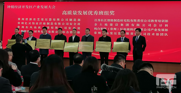 会议表彰了钟楼经济开发区2021年度高质量发展先进单位和个人。长江智造院荣获二星企业,总经理刘新获得优秀企业家殊荣,公司教育培训部荣获高质量发展先进班组称号。