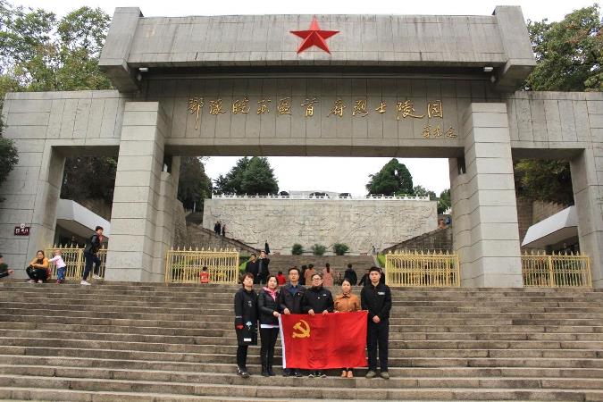 10月27日上午,踏着习近平总书记的足迹,支部一行来到鄂豫皖苏区首府烈士陵园,瞻仰革命烈士纪念堂。党员们听着英雄先烈的事迹,被他们不怕牺牲、顽强斗争的革命精神深深感染。面对大别山区3千多名英烈的名册,脚踏大别山革命根据地全貌地图,支部党员们向着党旗庄严宣誓,这既是郑重的承诺,也表明了我们坚定不移高举红色旗帜,传承大别山革命精神,把先辈们开创的事业不断推向前进的巨大决心!