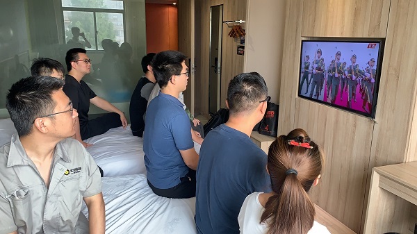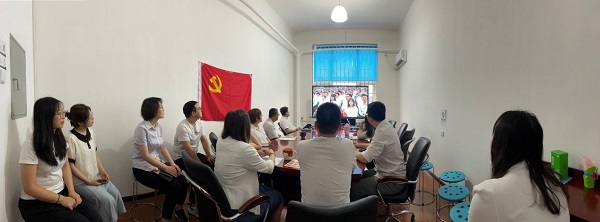 同时,出差的党员主动组织项目团队在项目现场观看大会直播盛况,感受大会现场的热烈氛围。