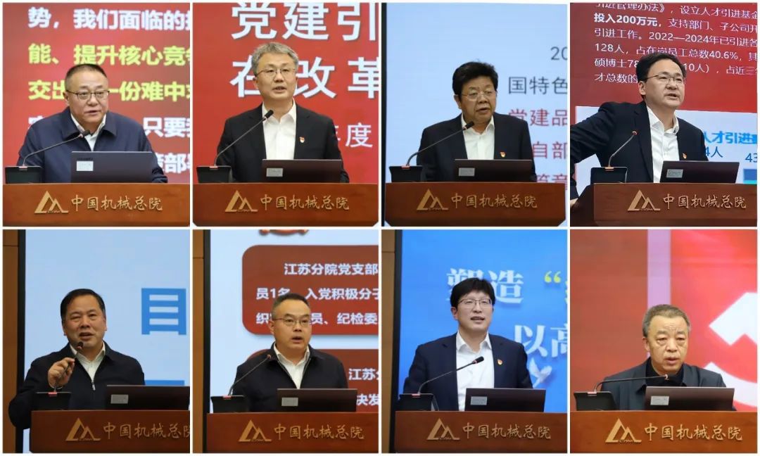 中机一院、机电所、中机认检、基础院、轻量化院、江苏分院、宁波机床院、云南院等8家单位党组织书记现场述职。王德成结合党组织书记现场述职和日常工作情况,逐一提问和点评,肯定了亮点成绩、指出了存在问题、提出了意见建议。集团党委委员分别进行简要点评。