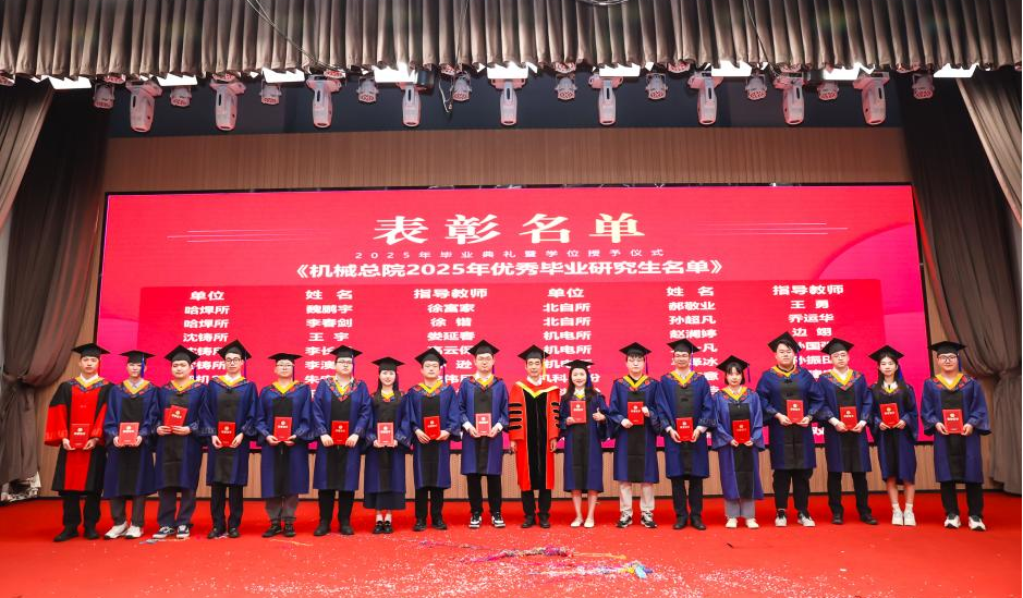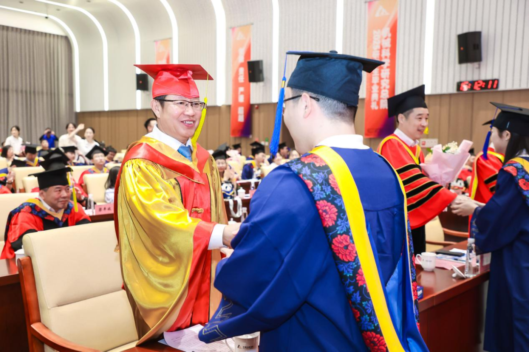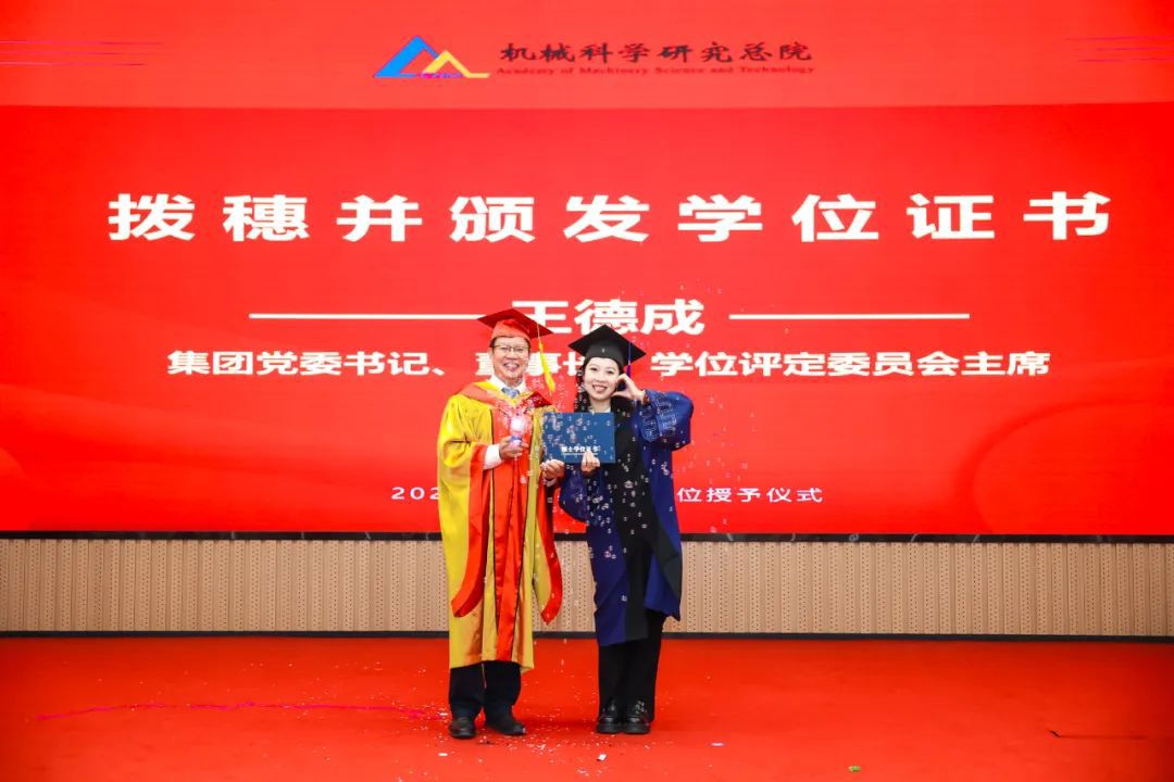 李爱国宣读了《机械科学研究总院2025届毕业生学位授予决定》,王德成为每位毕业生拨穗正冠并颁发学位证书。