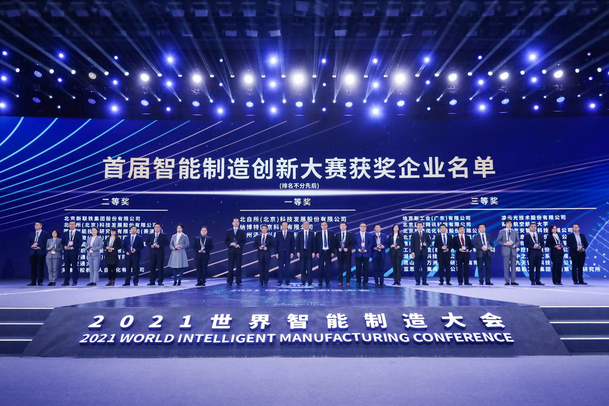 12月8日,2021年世界智能制造大会于南京盛大开幕,并对全国首届智能制造创新大赛获奖项目进行重磅发布。北自所(北京)科技发展股份有限公司(以下简称“北自科技”)携两支创新团队参加了两个赛道的角逐,凭借突出的创新成果和推广应用,从全国近1000支队伍中脱颖而出,以北部赛区两个赛道第一名的成绩进入全国总决赛。最终,北自科技“物流数字孪生装备”项目荣获“智能制造装备”赛道一等奖,“化纤长丝丝饼作业全流程智能化解决方案“项目荣获”系统集成解决方案“赛道二等奖。工业和信息化部党组成员、副部长辛国斌为北自科技获奖成果颁发了荣誉奖杯。
