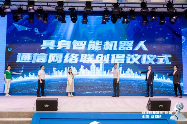 会上,鼎桥通信技术有限公司、北自所、华为技术有限公司、中国信息通信研究院、中国移动通信研究院、智元机器人联合发起了“具身智能机器人通信网络联创倡议”。