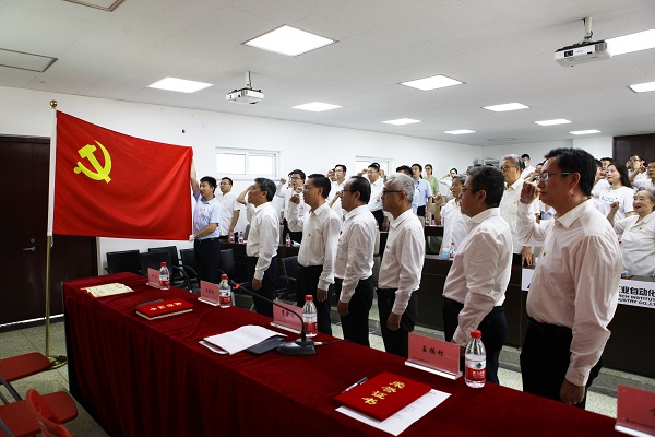 在鲜红的党旗下,公司党委书记、董事长王振林同志带领新党员们进行了集体宣誓,老党员们重温了入党誓词。铮铮誓词诠释着对党的忠诚和为党的事业奋斗终身的决心。