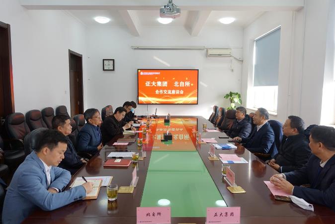 王振林欢迎邵来民一行的到访,并全面介绍了北自所的整体实力、历史沿革、分项业务以及在各个业务领域所取得的优异成绩,期盼与正大集团开展更加深入、更加全面的合作。