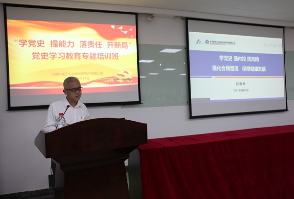 公司副总经理黄雪、总会计师、总法律顾问白国林和副总经理刘波分别以《风雨百年路,奋斗铸辉煌》、《学党史 强内控 防风险强化合规管理 保障健康发展》和《明理增信 崇德力行——从党的百年历程中汲取北自所前进的智慧和力量》讲了专题党课,并结合各自分管工作,从技术创新、合规管理和市场发展等多角度交流了认识和思考,提出了改进思路。