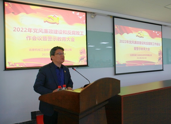 2月24日,北自所召开2022年党风廉政建设和反腐败工作会议暨警示教育大会。公司党政领导班子、中层干部、党支部委员共60余人参加了会议。常州基地通过视频形式参加了会议。会议由公司党委副书记、总经理李金村同志主持。
