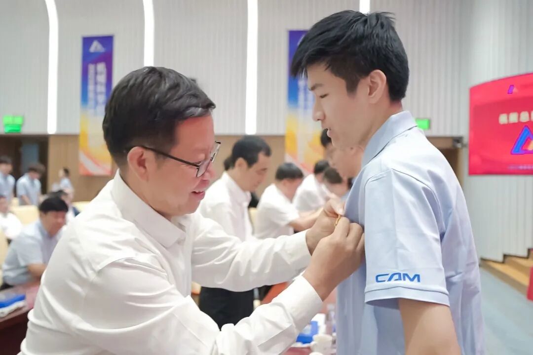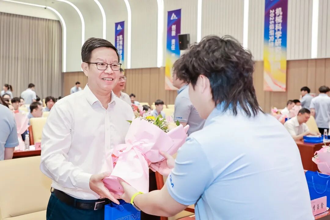 典礼上,王德成、李玉鑫及导师代表共同为新生佩戴总院徽章。这枚徽章不仅象征着中国机械总院人的身份,更承载着“以提升中国装备制造水平为己任”的使命与荣光。优秀导师奖、最受欢迎教师奖、新生入学奖学金和优秀课程奖获奖代表上台领奖。新生代表手捧鲜花向导师们献上诚挚敬意与节日祝福,表达莘莘学子的感激之情。